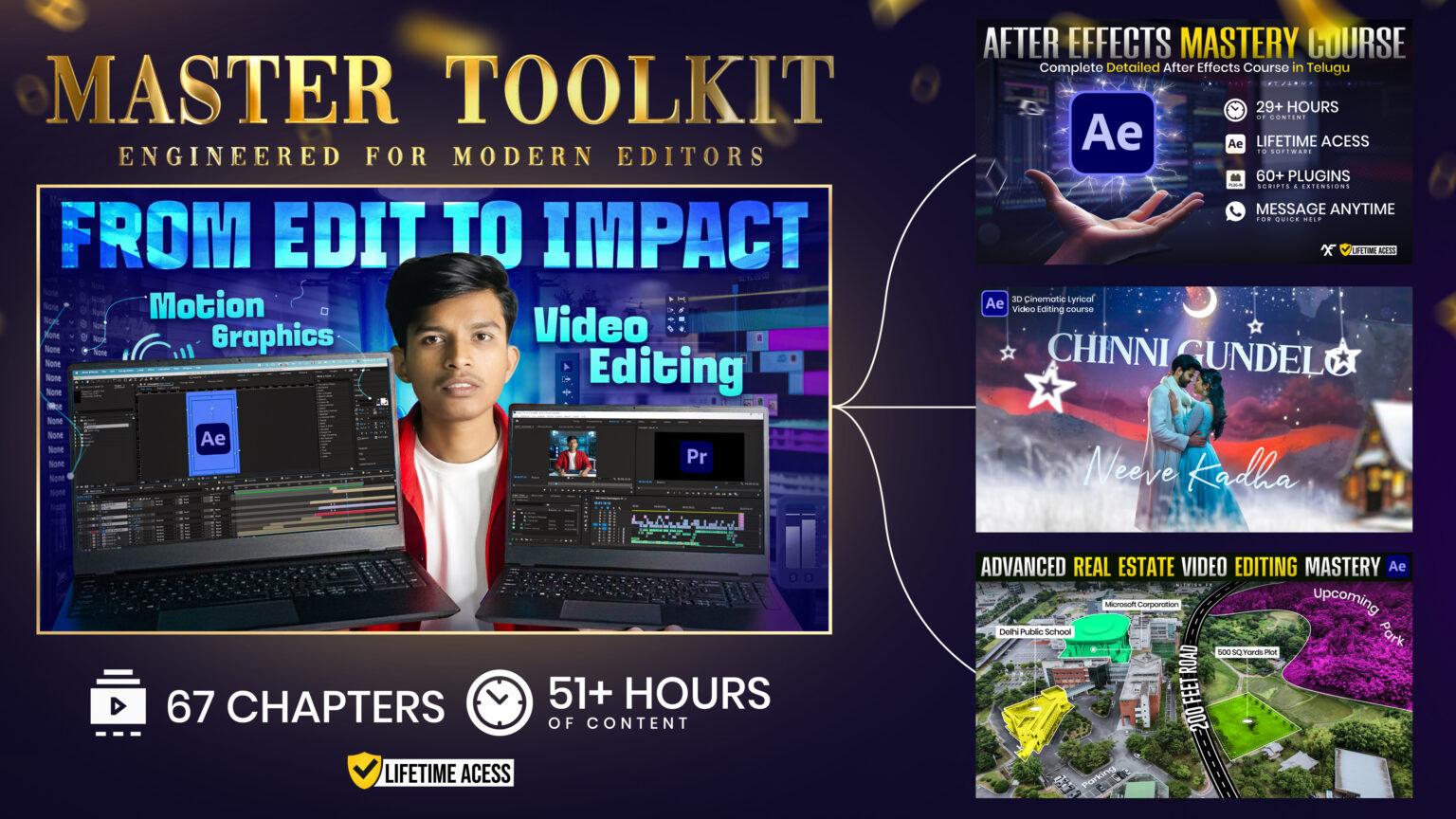 Learn Premiere Pro, After Effects, and industry techniques — in Telugu.